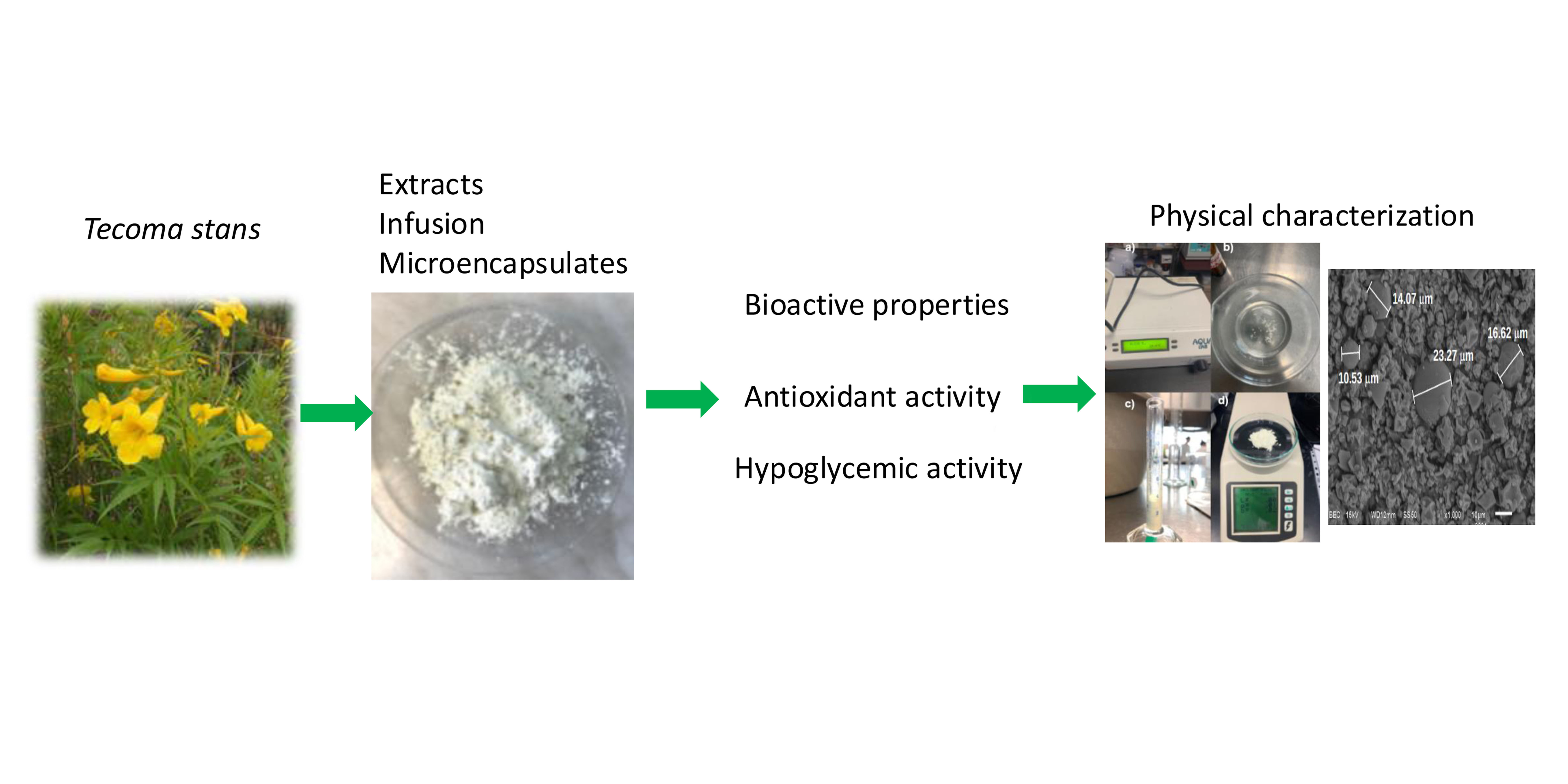 Luna Guevara, doctora en Desarrollo de Estrategias por el Colegio de Postgraduados, señaló que otro de los objetivos es cultivar la planta de Tecoma stans a nivel de invernadero, para después utilizar esa materia prima en una planta piloto, con el fin de producir los encapsulados en polvo.