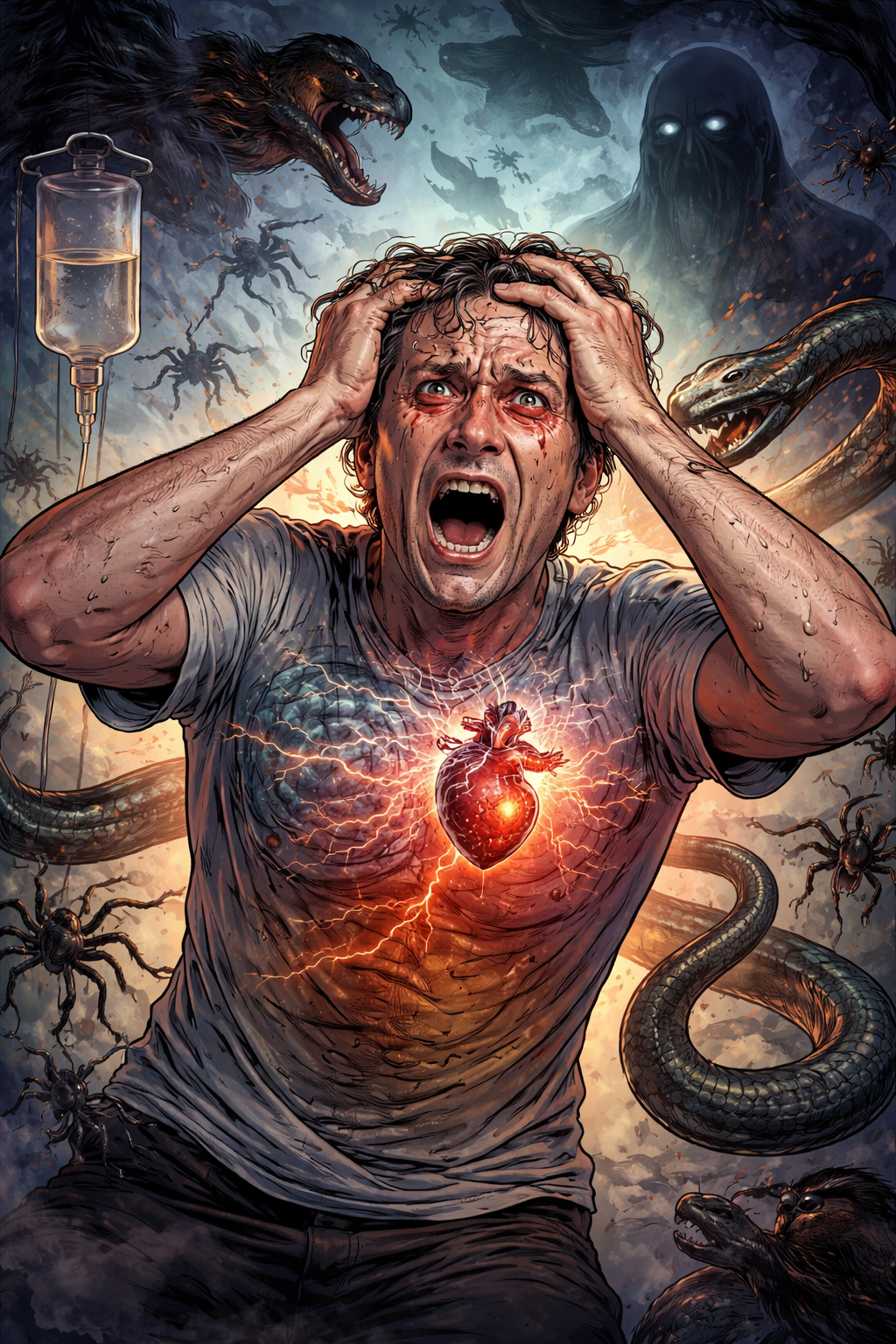 Quien lo padece entra en un territorio donde la realidad se fractura. Aparecen temblores intensos, sudoración profusa, fiebre, taquicardia, hipertensión. El cuerpo tiembla como si quisiera salirse de sí mismo. Pero lo más inquietante ocurre en la mente: confusión severa, desorientación, alucinaciones visuales y auditivas —insectos que caminan por la piel, voces que insultan, sombras que amenazan—. No es raro que el paciente viva un estado de terror absoluto. El cerebro, acostumbrado al efecto depresor del alcohol sobre el sistema nervioso central, entra en hiperexcitación cuando esa sustancia desaparece. Es el rebote químico de años de sometimiento.