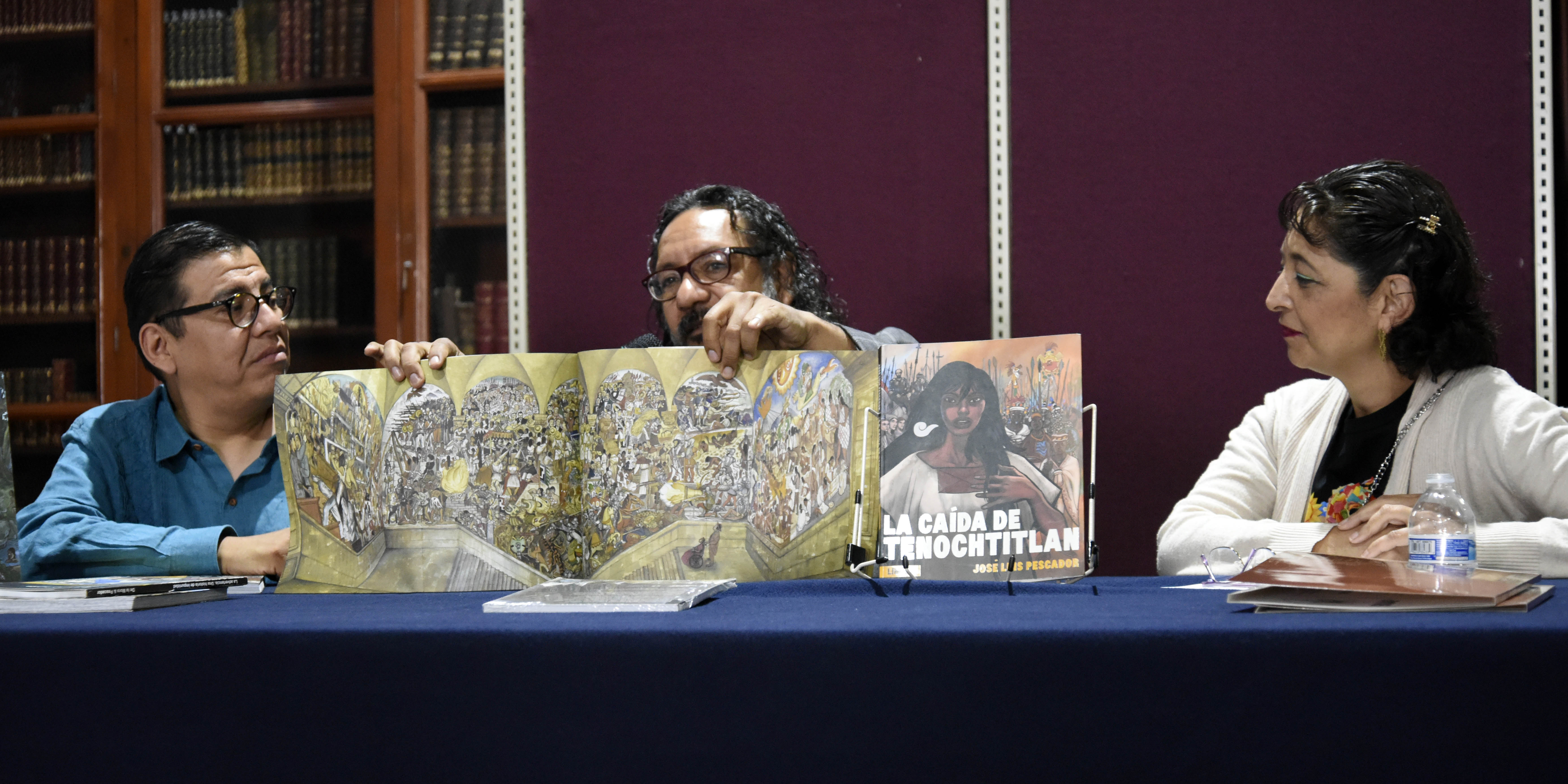 Uno de los momentos destacados fue la presentación de La caída de Tenochtitlán, del ilustrador y autor José Luis Pescador. Lejos de tratarse de una simple ficción, la obra se sostiene en una sólida base documental: integra textos del siglo XVI, referencias visuales a los murales de José Clemente Orozco y una narrativa que transita entre tiempos para evidenciar, con crudeza, la incapacidad de entendimiento entre dos mundos destinados al choque.