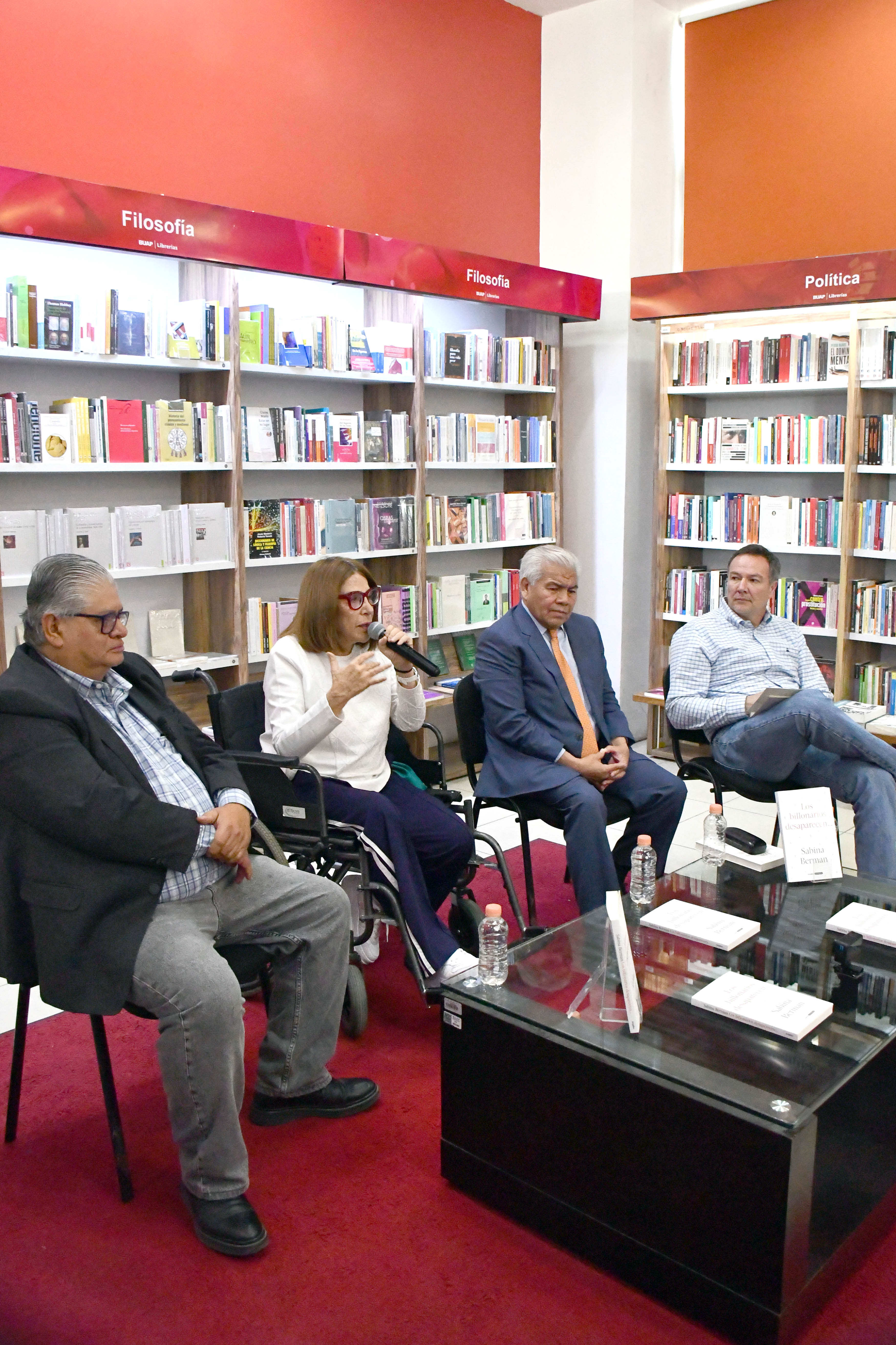 Para la escritora Sabina Berman, más que las ideologías, las historias que ha leído o escuchado, y que se quedaron en su corazón, son las que siempre la guían en los nudos de la vida, cuando es momento de tomar decisiones correctas. Con el libro Los billonarios desaparecen…, su aspiración es ofrecer al lector la misma fórmula. Así lo mencionó la autora durante la presentación de esta obra en la Esquina en Resonancia de las Librerías BUAP, en el Complejo Cultural Universitario, donde la Rectora Lilia Cedillo agradeció su presencia en la universidad.